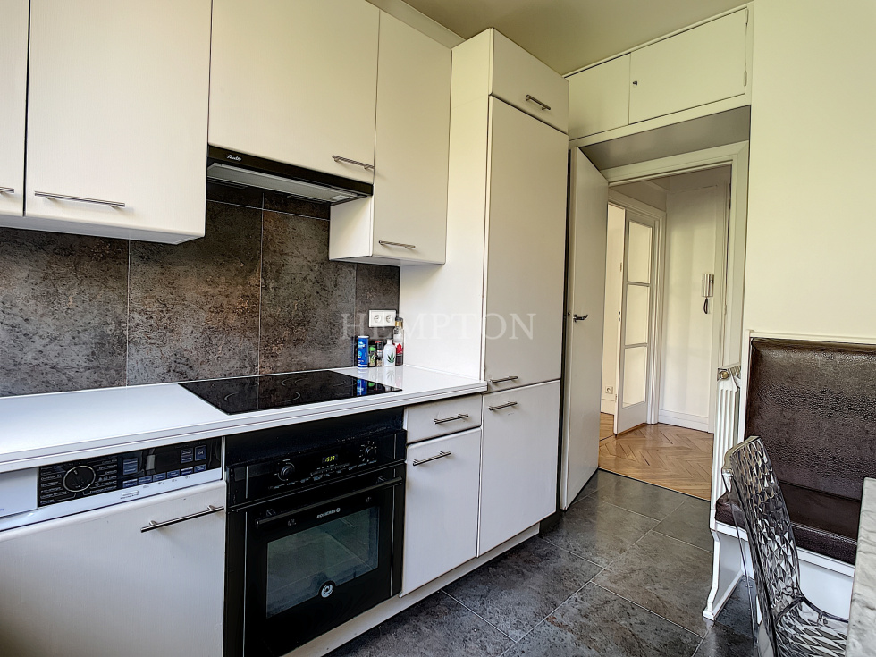 Hempton Paris Trocadero vous propose un appartement meublé situé à deux pas de la place du Trocadéro, au 2ème étage d'un immeuble des années 50. Il se compose d'une entrée, un grand séjour avec cheminée, d'une cuisine séparée et entièrement équipée, une grande chambre, une salle de bain et WC séparé. Une cave complète le bien.