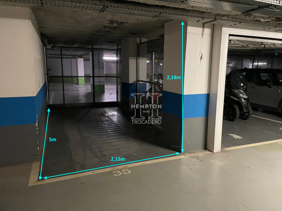 L'Agence Hempton Paris Trocadéro vous propose : située au sein de la résidence de standing Passy Plaza, dans le très prisé quartier de Passy, cette place de parking en sous-sol représente une opportunité rare. Nichée au niveau -3 de l’immeuble, elle porte le numéro 35 et bénéficie d’un accès sécurisé 24h/24 et 7j/7, offrant une solution de stationnement fiable et confortable dans l’un des secteurs les plus recherchés du 16ème arrondissement.