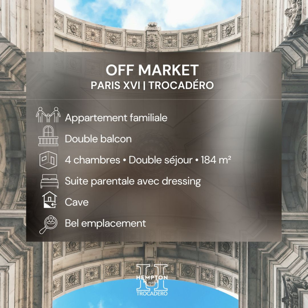 L’Agence Hempton Paris Trocadéro vous propose, à proximité immédiate de la place du Trocadéro, un agréable appartement familial de 184,8 m² situé au 2ème étage avec ascenseur d’un immeuble sécurisé des années 1950.