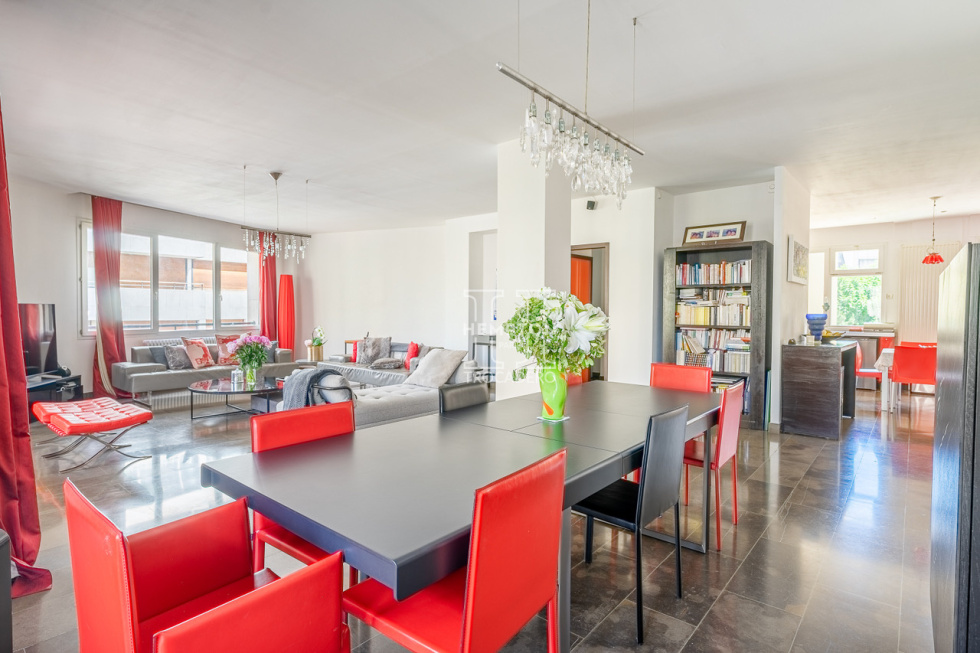 Ce bien traversant se distingue par ses volumes généreux, sa double exposition et son agencement idéal. Il se compose d’une entrée distribuant un vaste séjour lumineux de 65m², ouvert sur un balcon côté rue, et d’une cuisine semie ouverte avec un second balcon donnant sur cour.