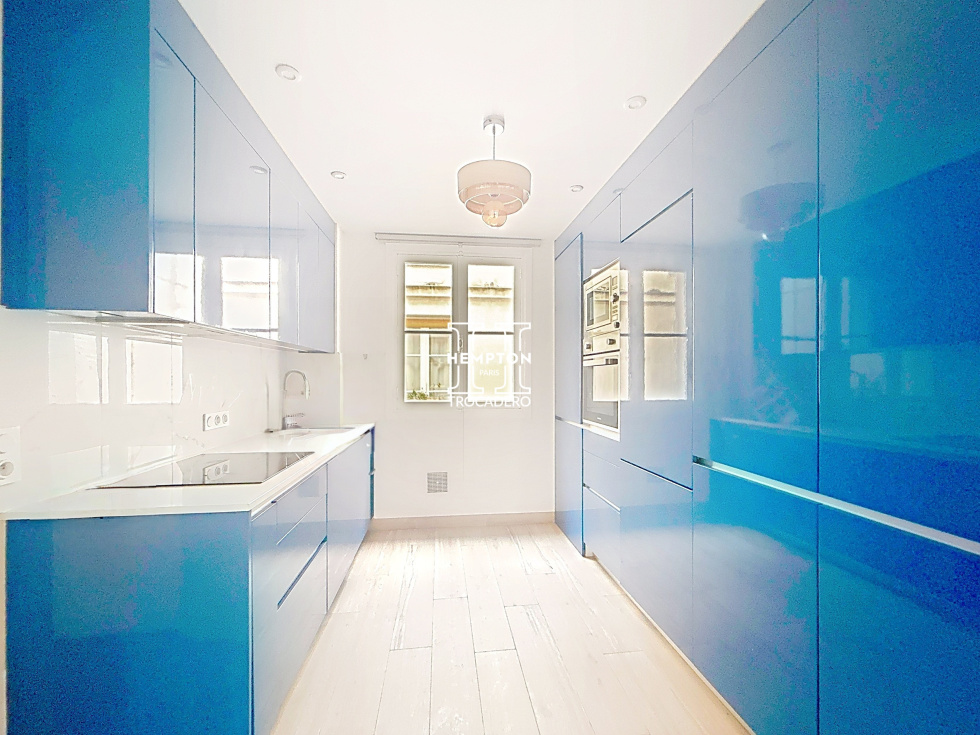 Entièrement rénové avec des prestations de qualité, cet appartement se compose d’une belle entrée ouvrant sur un double séjour spacieux et baigné de lumière. La cuisine, indépendante et entièrement équipée, bénéficie d’un double accès : à la fois depuis le séjour et depuis l’entrée, offrant une circulation fluide et une fonctionnalité optimale.