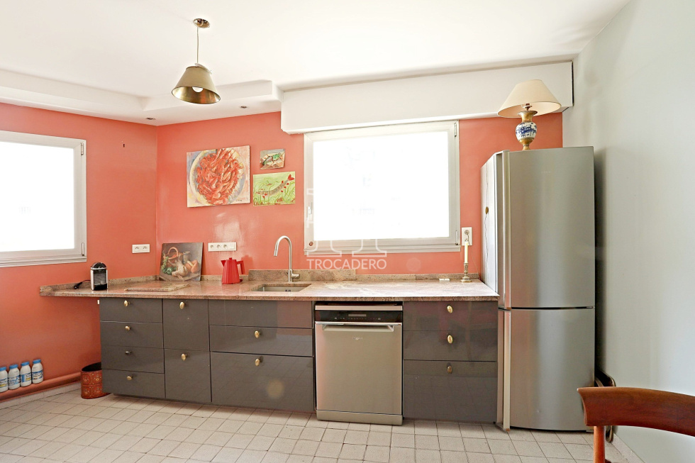 Son emplacement est particulièrement recherché. À proximité immédiate de Passy, de l’Avenue Victor Hugo, des Champs-Élysées, du Bois de Boulogne et des jardins du Ranelagh, ce bien bénéficie d’un environnement à la fois élégant, vivant et verdoyant, ainsi que d’excellentes connexions en transports. Le secteur est également prisé pour la qualité de ses établissements scolaires, notamment les écoles Decamps, le lycée Janson de Sailly et l’école privée Franklin.